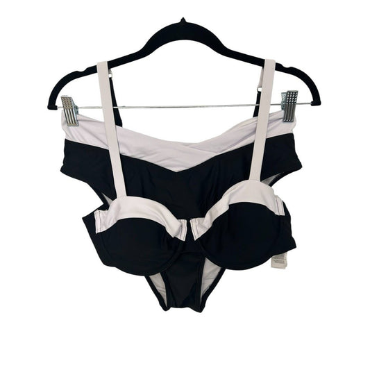 CUPSHE x Jojo Fletcher Black & White High-Waisted Bikini Swimsuit