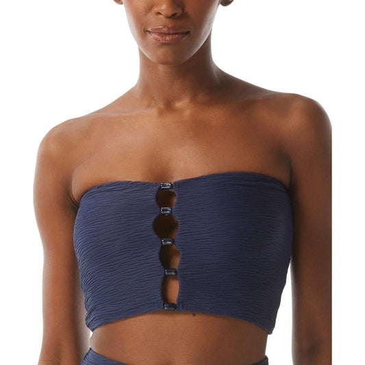 Carmen Marc Valvo Textured Bandeau Crop Top High-Waisted Bikini Bottoms Navy