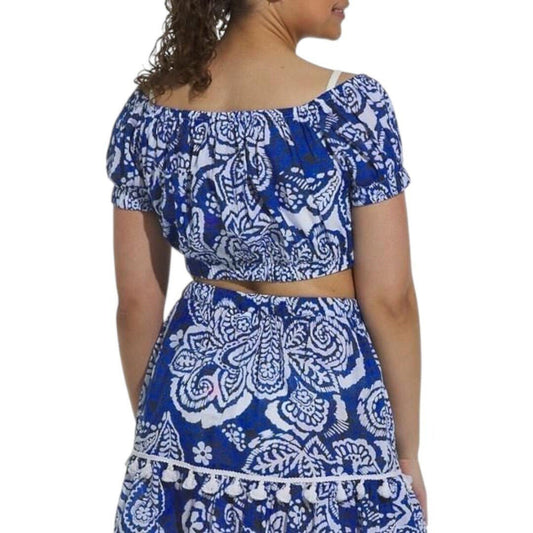Dotti Crop Top Paisley Swim Cover up Blue/White