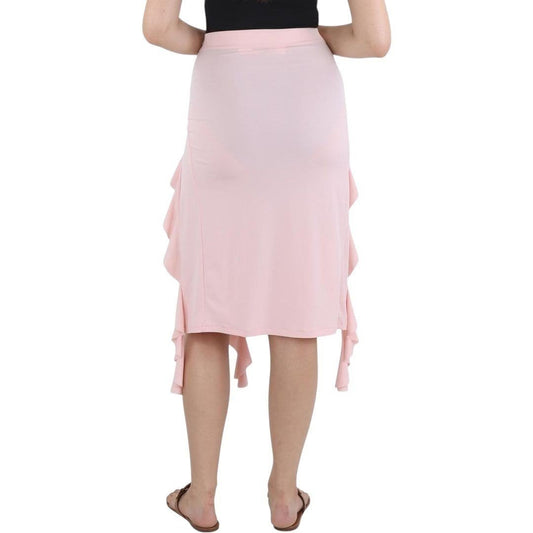 Aqua Lettuce Front Slits Midi Skirt Rose