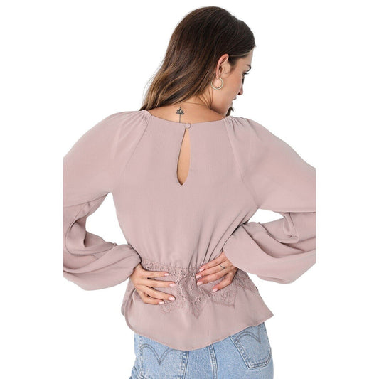 Lulus Loving Arms Taupe Lace Long Sleeve Peplum Top
