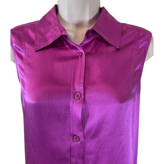 Chadwick's Luxurious Purple 100% Silk Sleeveless Button-Down Blouse