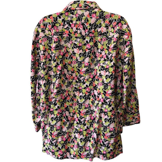 Kim Rogers Floral Print Pleated Button Down Shirt