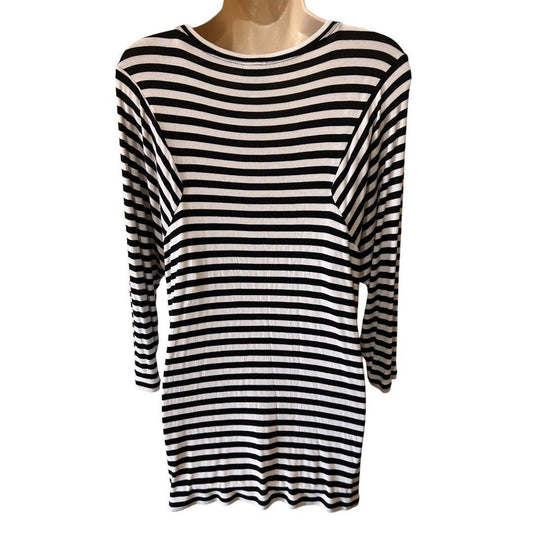 Cabi Striped Long Sleeve Tunic Top Casual Everyday Black White