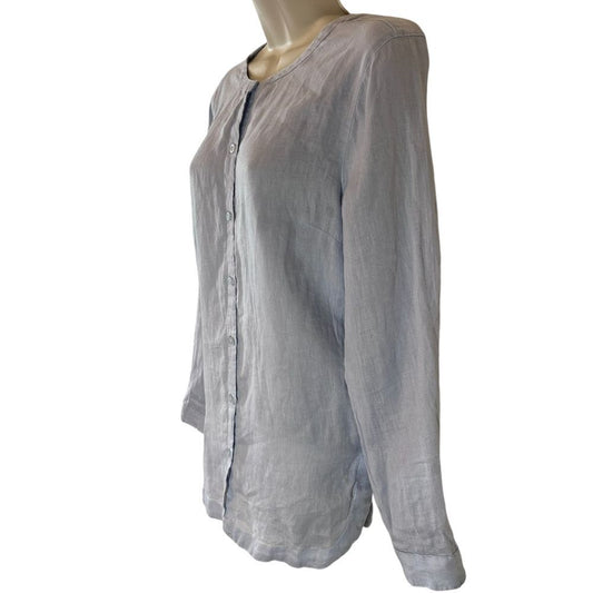 Peck & Peck Light Gray 100% Linen Button Down Shirt Side Tie Detail