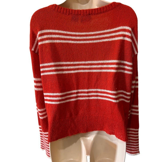 Press Striped Knit Sweater Orange White Long Sleeve Casual Pullover